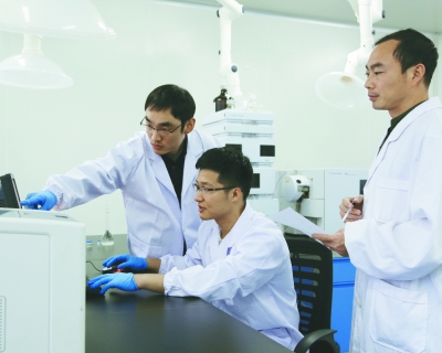 理化检验室内,除了超高分辨液质联用仪等多部精密仪器外,桌上还摆放着一个个玻璃小瓶子。
