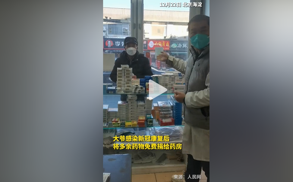 大爷感染新冠康复后将多余药物免费捐给药房