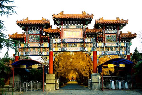 图为秋阳中的牌楼正门 图片来源:雍和宫官网