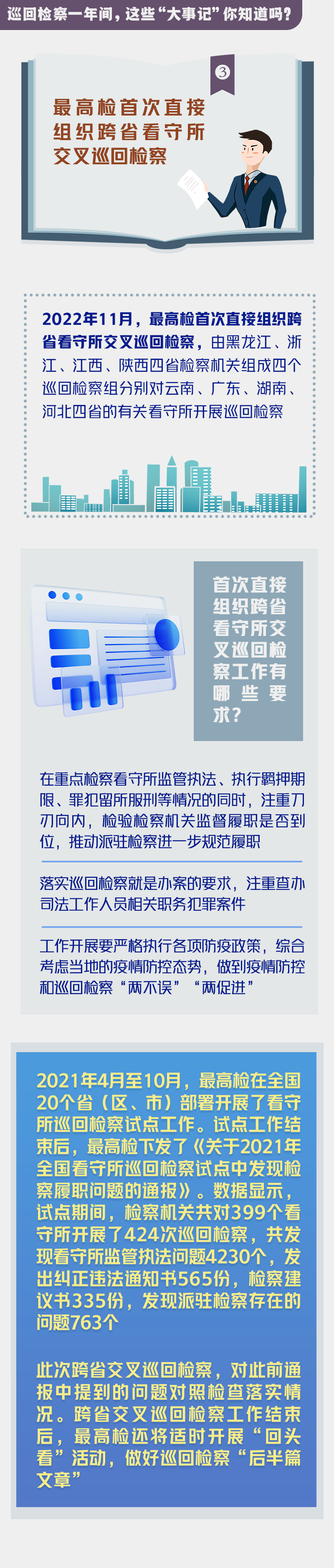 在今年1月的全国检察长(扩大)会议上,最高检对2022年巡回检察工作作出部署:要不断深化巡回检察,借鉴监狱巡回检察经验,全面推开看守所巡回检察,积极探索开展社区矫正巡回检察。