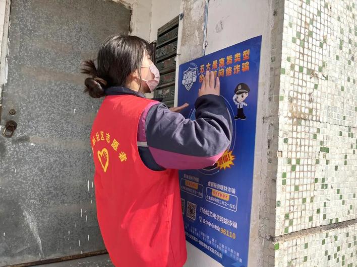 志愿者张贴反诈宣传海报。史盼盼 摄
