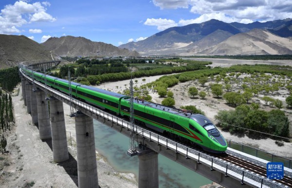 复兴号列车行驶在西藏山南境内(2022年6月22日摄)。新华社记者 觉果 摄