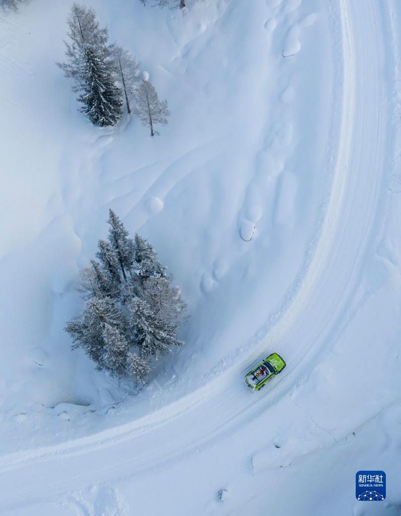 这是2023年1月12日拍摄的新疆阿勒泰地区禾木吉克普林滑雪场(无人机照片)。