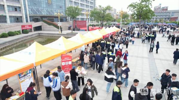 在宿迁技师学院2023届毕业典礼现场,40家企业提前布展,为典礼结束后的“抢人大战”做着准备。毕业典礼一结束,现场“秒”变大型招聘会,各家企业的招聘人员纷纷拿出优厚待遇向同学们发出邀请。安徽宿州的杨宸毕业后想留在宿豫,十分属意京东客服岗位,并达成了初步就业意向。