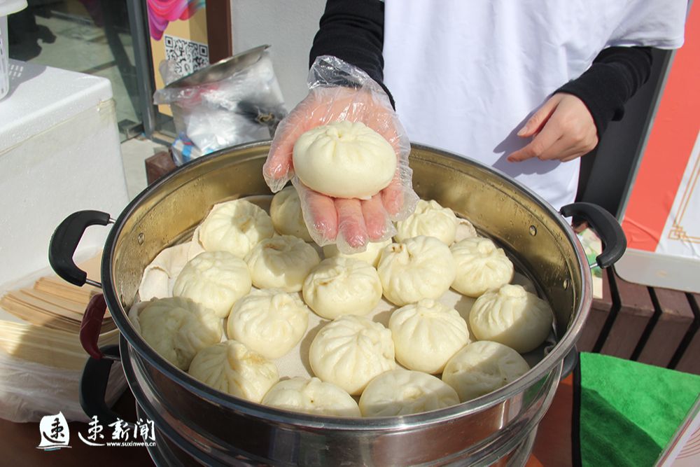 场内比赛激烈,场外美食飘香。现场菱角秧鲜肉包、芡实饼、莲子羹、带刺鱼丸等纯手工美食吸引了很多游客驻足品尝。