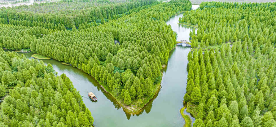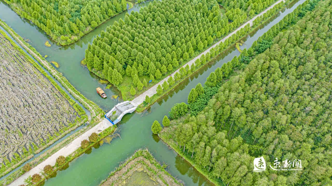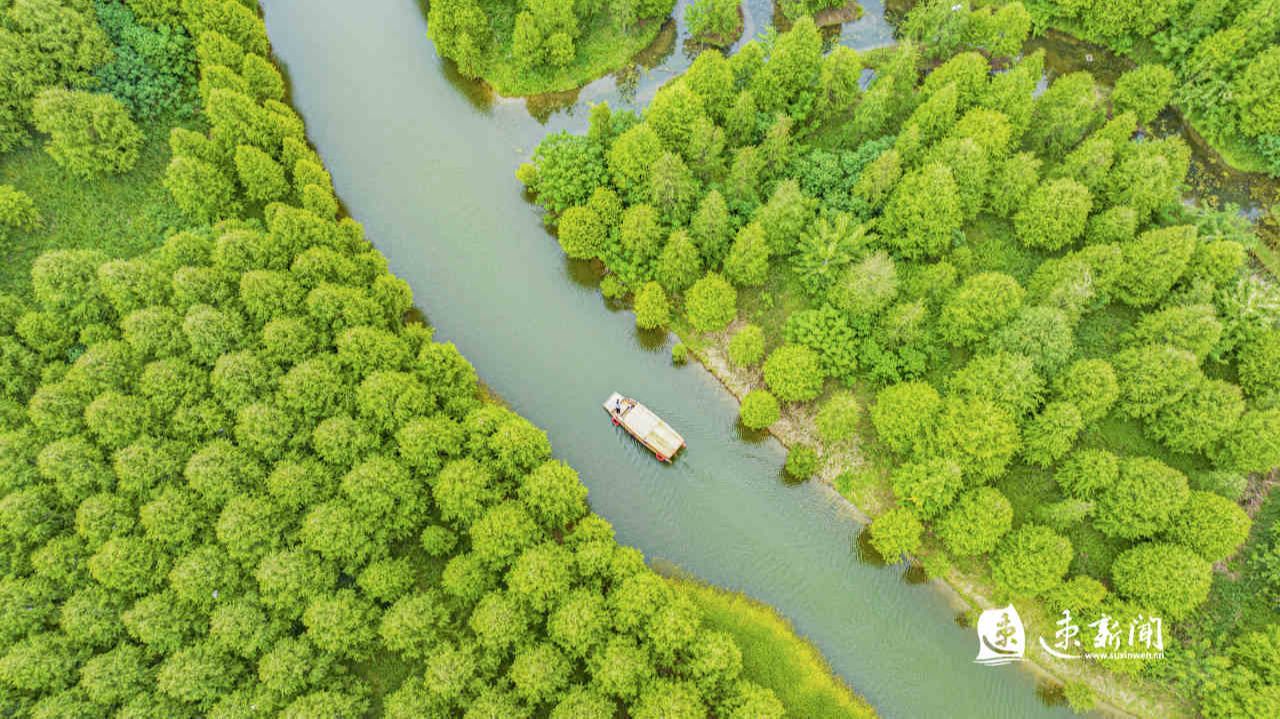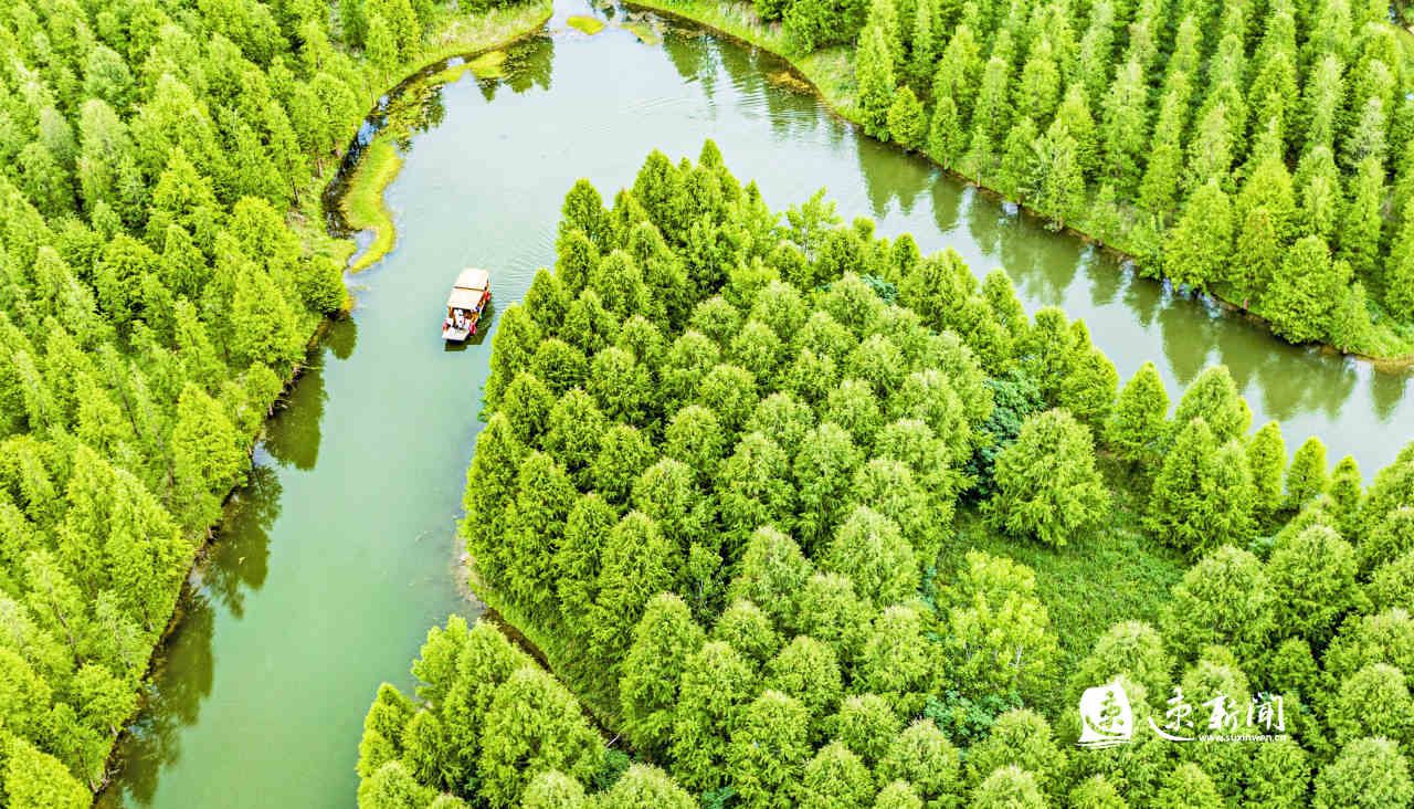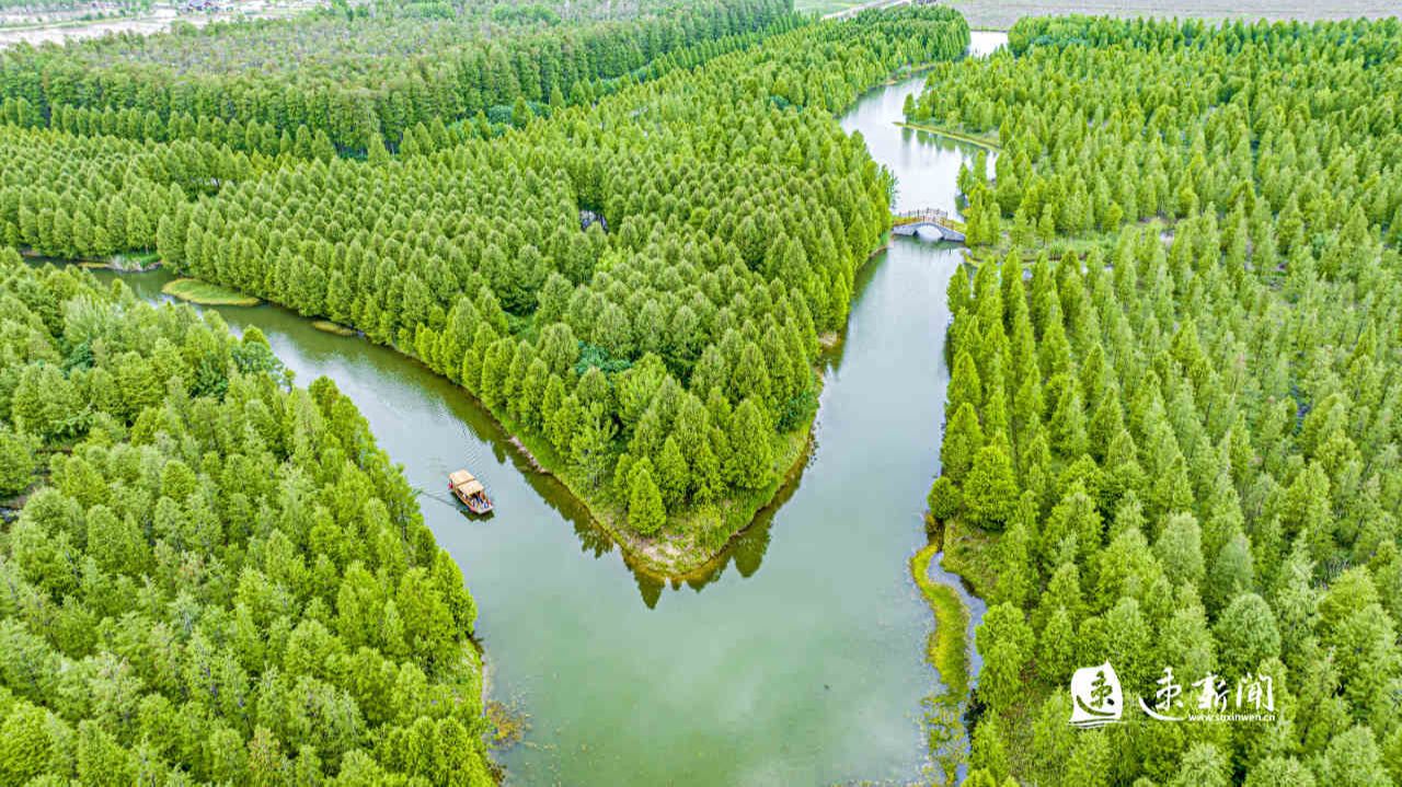 5月2日,宿迁宿豫区新庄杉荷园湿地,绿意浓浓、错落有致的红杉树与清澈碧绿的河水相互映衬,犹如一幅色彩艳丽的乡村“杉”水画。