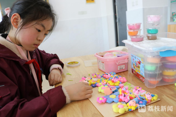 构图、和泥、塑形、搭建……在志愿者老师们的帮助下,同学们充分发挥自己的想象与创意,进行“护苗”泥塑作品创作。“小小绿书签,护苗共成长”“扫黄打非,护苗有我”……一个个充满童趣、创意十足的“非遗”绿书签纷纷出炉。