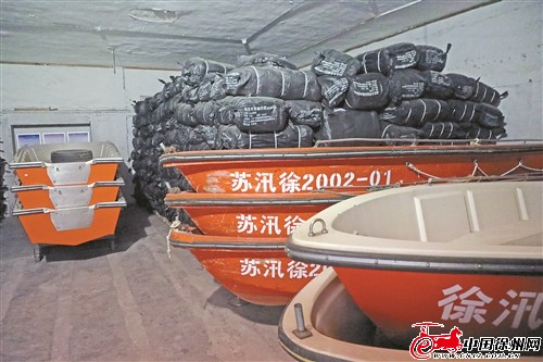 在市防汛物资储备仓库现场,编织袋、土工布等防汛物资已全部就位。目前县(市、区)储备三袋(编织袋、麻袋、防汛专用袋)415万只、土工布35万平方米、块石5.2万吨,确保重大险情快速反应、有序应对。