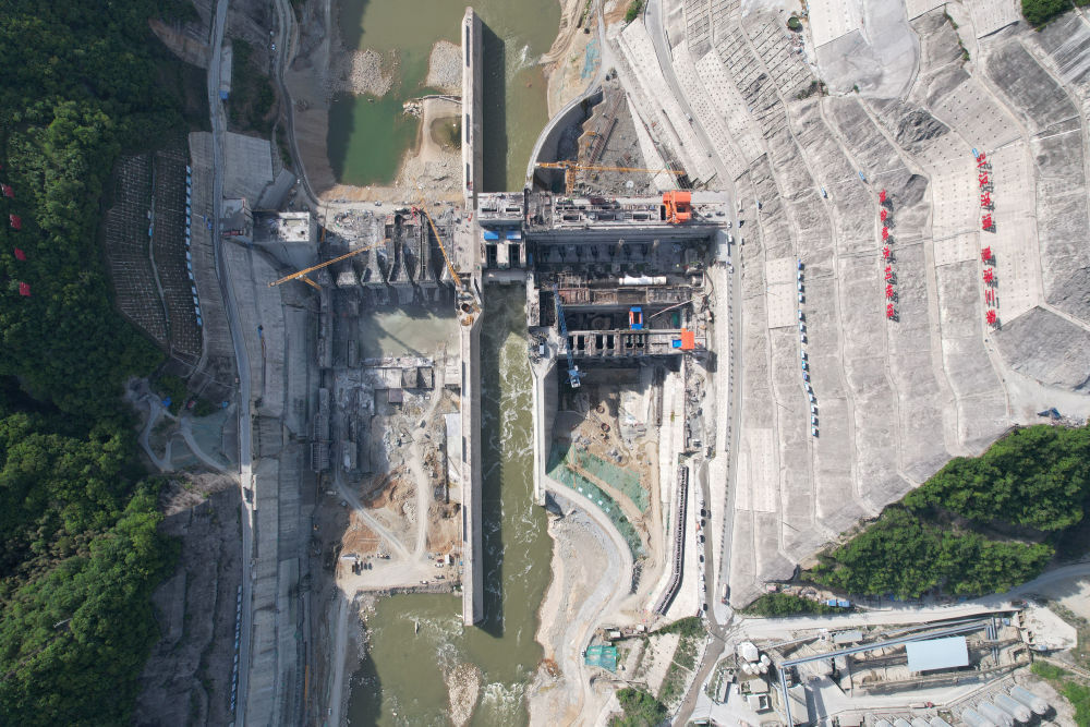 这是建设中的黄金峡水利枢纽工程(2022年4月19日摄,无人机照片)。新华社记者 邵瑞 摄