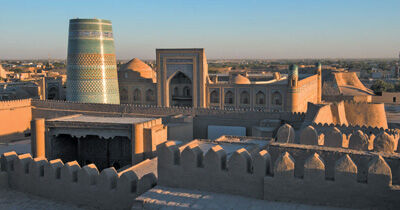 乌兹别克斯坦希瓦古城远眺。