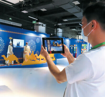 2022年8月26日,观众在“科技赋能文化旅游 洞见哈萨克斯坦”展览现场参观。