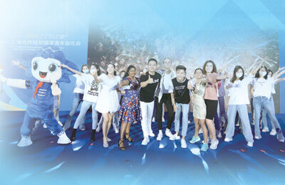 参加2022“上合之夏”中国—上海合作组织国家青年联欢周的青年们合影留念。