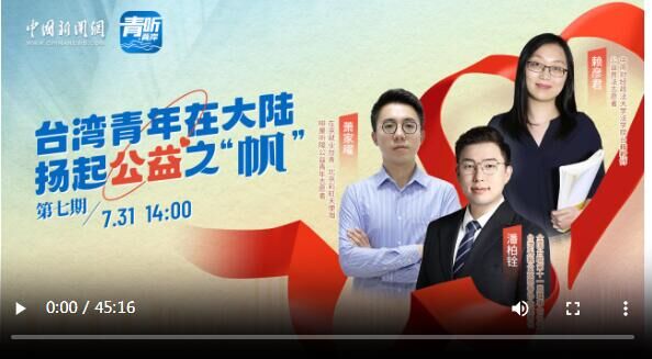 当下,越来越多的台湾青年选择来到大陆生活发展,在他们当中,还有很多热心于公益事业的青年代表,他们在大陆这片广阔的海洋扬起公益之“帆”,乘风破浪,用实际的行动生动诠释着“两岸一家亲”的理念。