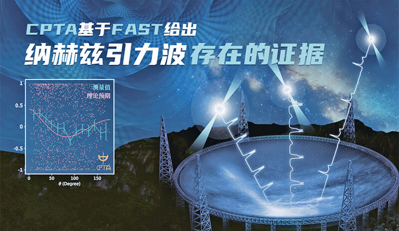 中国脉冲星测时阵列(CPTA)研究团队,利用被誉为“中国天眼”的500米口径球面射电望远镜(FAST),发现纳赫兹引力波存在的关键性证据。图为这一发现的示意图。 中国科学院供图