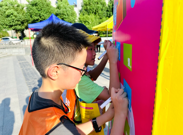 “我喜欢社区里的种子图书馆,既环保又有意义。”“儿童游乐设施损坏,要及时更换。”“我希望学校门口的斑马线能像彩虹一样七彩”……参赛的孩子们你一言我一语,踊跃表达自己的“金点子”。为了发挥青少年儿童“社区小主人翁”的作用,水秀社区坚持用“一米高度看社区”,特别设置了“寻宝心得墙”,邀请小朋友和家长们写下活动中发掘的社区“闪光点”“曝光点”,并为社区儿童乐园改造、未成年人活动开展等社区治理工作谈想法、提建议、投选票,为善治水秀注入“家力量”。