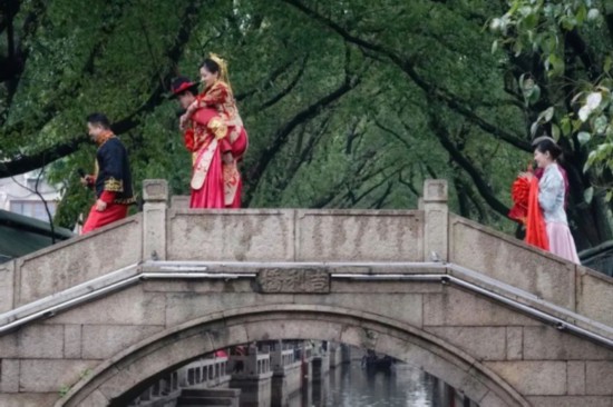还有身着各朝形制汉服的国风小姐姐,引领着游客穿梭于世界文化遗产——退思园、三桥、明清街等同里网红打卡点位。