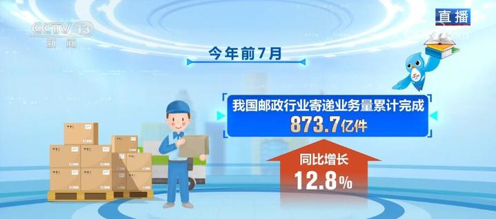 央视网消息:今年前7月,我国邮政行业寄递业务量累计完成873.7亿件,同比增长12.8%。其中,快递业务量累计完成703亿件,同比增长15.5%;国际/港澳台快递业务量累计完成16.1亿件,同比增长57.2%。
