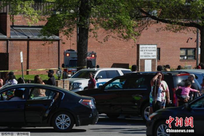 资料图:2021年4月12日,美国田纳西州东部城市诺克斯维尔一所高中发生枪击案,造成一人死亡,一名警官受伤。