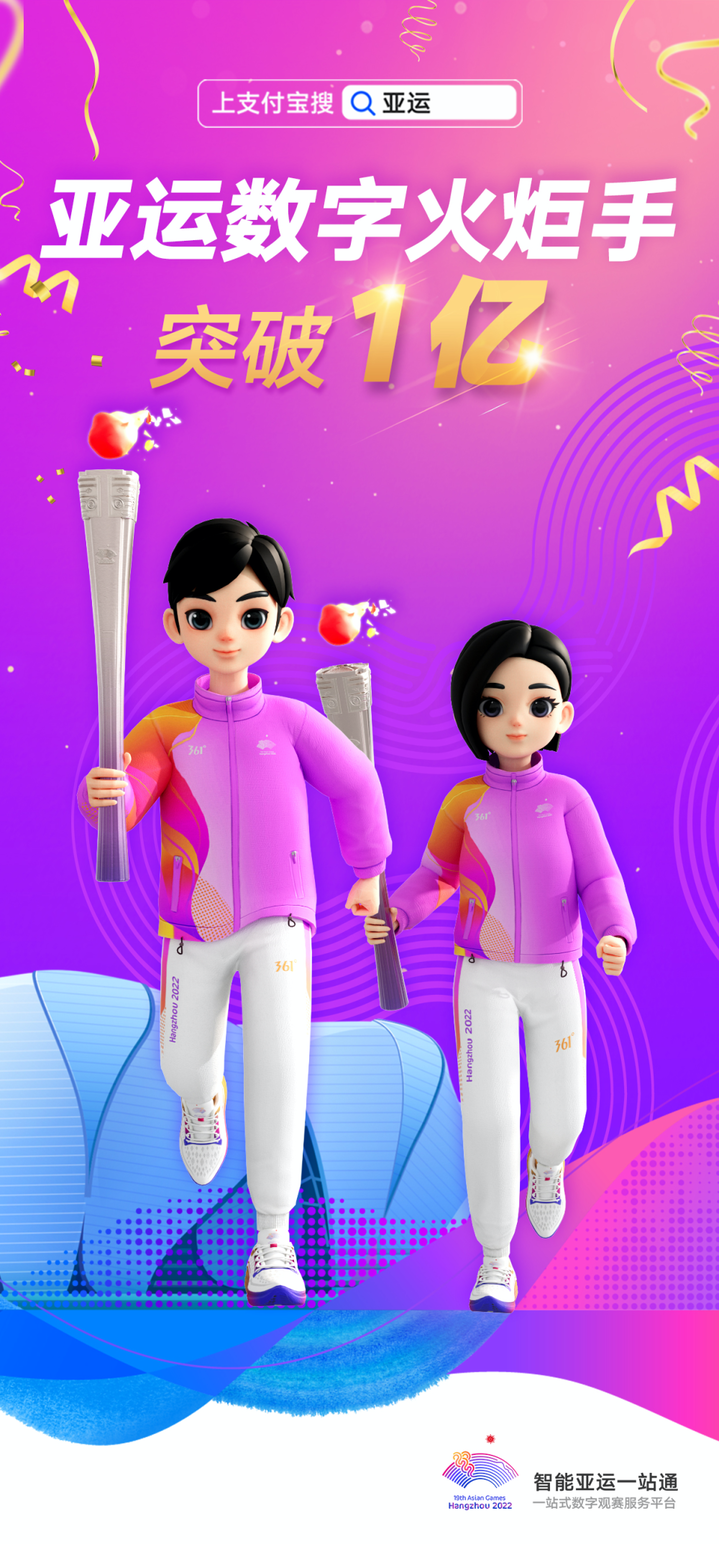 新华社杭州9月15日电 记者15日从杭州亚组委获悉,“亚运数字火炬手”活动参与总人数已突破1亿人。