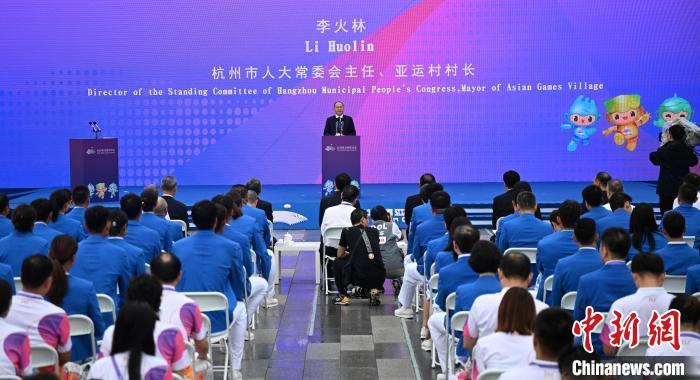 中新网杭州9月16日电 (记者 王逸飞)9月16日,杭州亚运村开村仪式暨中国体育代表团欢迎仪式在杭州亚运村举行。中国体育代表团正式入住杭州亚运村。