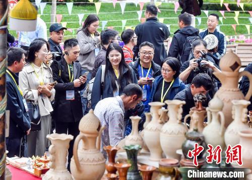 图为港澳台和东南亚华文新媒体代表在喀什市喀什古城花盆巴扎采访拍摄。 中新网记者 刘新 摄