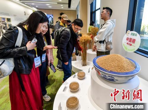 图为港澳台和东南亚华文新媒体采访团在新疆昌吉市九圣禾种业创新实验室参观访问。 中新网记者 刘新 摄