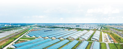 山东省寿光市丹河设施蔬菜标准化生产示范园,蔬菜大棚鳞次栉比。