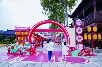 18日,栖霞古镇正式开街,在开街仪式现场,位于街口的由枫叶包裹的巨型枫叶书惹人注目,广大市民游客纷纷在这里打卡签到,留下秋日纪念。