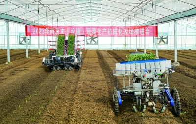 记者获悉,为了加快推进蔬菜种植“机器换人”步伐,南京市年底前建成10个机械化率超70%的蔬菜生产示范基地,目前已建设完工6个;到明年,将在大力发展蔬菜生产机械化的基础上,推进蔬菜生产适度规模化,全面推广成熟的机械化生产技术,扶持建立一批蔬菜生产机械化服务主体,推动主要涉农区建成省级农业生产全程全面机械化示范县,全市(设施)蔬菜生产机械化水平达70%。