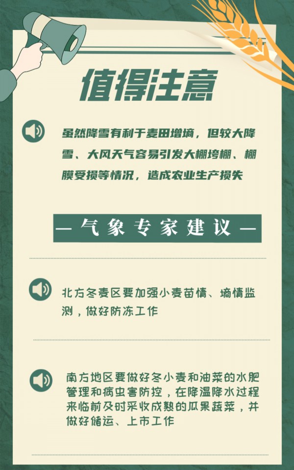当前,我国正在经历一轮大范围雨雪降温天气,农业生产遭遇不小考验。为避免和减轻降温可能给农业生产带来的不利影响,一定要提前做好防寒防冻和安全生产准备工作。如何防范,有哪些注意事项?这份防寒防冻指南请收好。