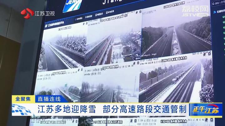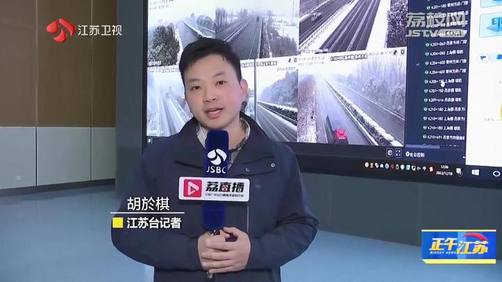 江苏台记者胡於棋报道:“我现在所在的地方就是江苏省高速公路调度指挥中心。通过实时监控可以看到,目前全省高速路网的降雪仍在持续,主要集中在苏南片区,尤其是南京、镇江以及常州区域,目前的降雪量还是比较大的。我们也看到在很多路段的路面上,尤其是道路的两侧,已经出现了少量降雪,给交通出行造成了诸多的不便。在连线前,我们不时就会看到有清障车的身影出现在监控大屏中,也就意味着在今天上午,包括轻微的碰擦以及追尾事故在不断的增多,这也是给我们车友朋友提了一个醒。为了更加保障大家的出行安全,交管部门及时做出了应对措施。在所有下雪区域的路段,做出了不同程度的交通管制措施。可以看到黄色的点位是正在实施着二级管控,包括限速六十,禁止大客车危化品车辆驶入。而蓝色的点位则表示实施着三级管控的措施,也就是限速八十。现在包括润阳大桥、京沪高速的扬州泰州无锡段、沈海高速的南通苏州段、沪陕高速的南京扬州段以及沪蓉高速的南京镇江常州段等路段,目前正实施着二级交通管制措施。而三级交通管制的路段则包括了像苏通大桥京沪高速的广京段、长深高速的南京常州无锡淮安段等等。在这里要提醒所有准备出门或者是已经在高速上的车友朋友,一定要提前关注相关的管制信息。另外,需要提醒大家的就是雪天出行,路面湿滑,一定要注意保持车距、减速慢行。面对任何情况都不能紧急踩刹车或者猛打方向盘,以免造成一些不必要的事故。如果遇到部分路段,比如说可能是发生了小的事故,有一点点拥堵,也要请大家耐心等待,千万不能占用应急车道。”