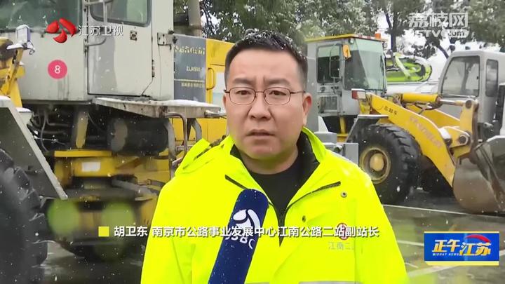 江苏台记者田甜报道:“这里是南京公路事业发展中心江南公路二站,这里有上百名养护人员,负责绕城公路沿线100万平方米的路面养护。在这个养护区域里面包含很多主线桥梁,比如说南京交通史上最大的互通——油坊桥互通,还有很多匝道,都是容易上冻结冰的。所以,在这样的天气里,所有养护人员都是24小时待命。在工区内我们看到各种除雪设备,还有像融雪剂等物资是一应俱全。据了解,在今天上午8点50的时候,江南二站采取机械和人工配合方式,已经对绕城公路沿线的钢箱梁匝道进行了一次融雪剂的撒布。现在雪越下越大,养护人员正在往撒布车里装融雪剂,为接下来的撒布工作做准备。”